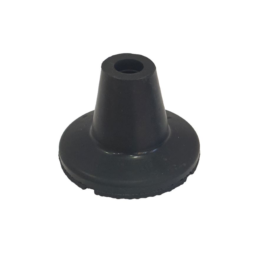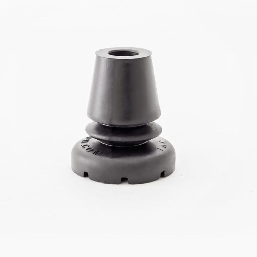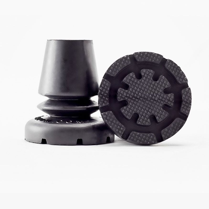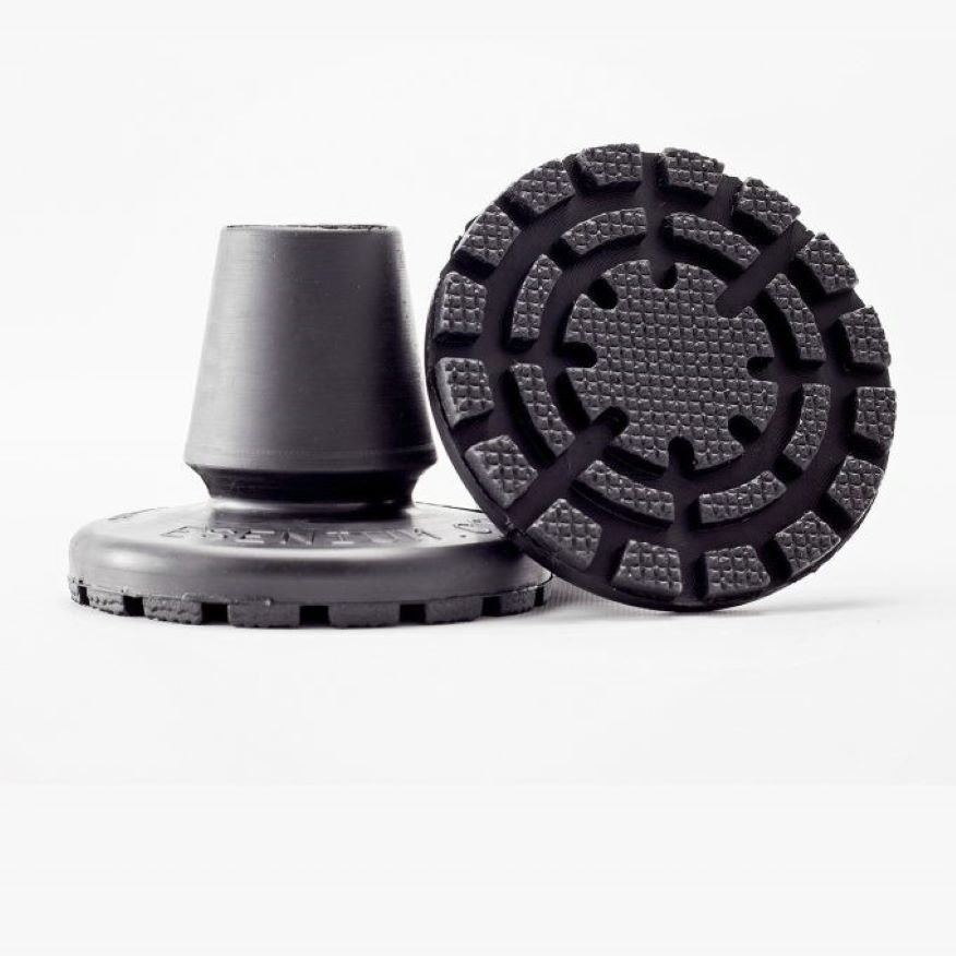 Pieza que se pone en el extremo opuesto al puño del bastón o muleta. Fabricada en caucho o goma, existe una gran variedad de tamaños y colores. Los tamaños más usados están reforzados con una arandela metálica en el interior de la base, que evita que el tubo del bastón o muleta dañe o perfore su interior.