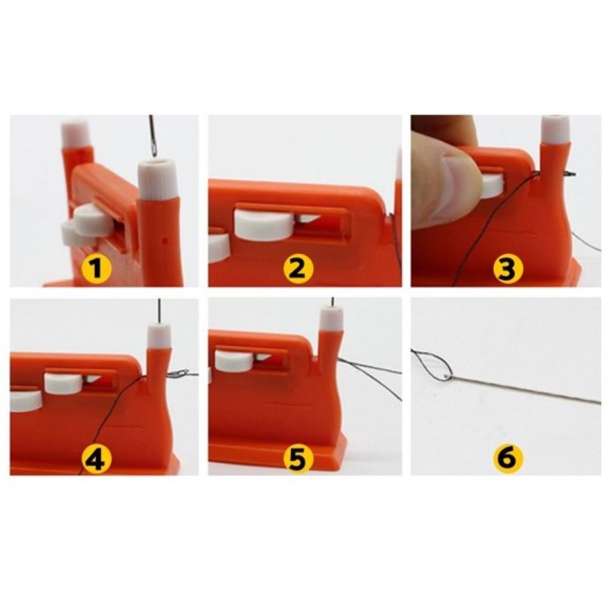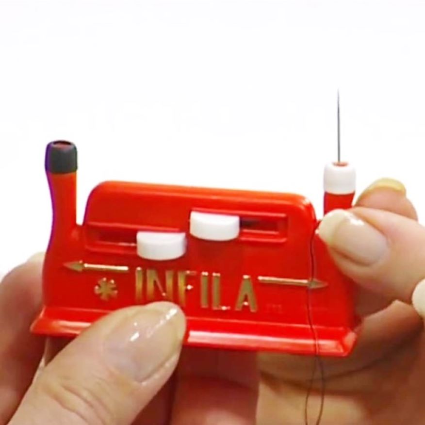 Sencillo dispositivo de plástico que facilita el enhebrado de agujas aún en condiciones de visión disminuida o manos temblorosas. El enhebrador de agujas enhebra automáticamente agujas grandes o pequeñas y tiene un botón de operación simple para enhebrado simple o doble.