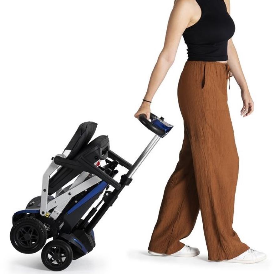La I-Transformer presenta un sistema de plegado automático patentado, lo que permite que la scooter quede de pie, evitando que el usuario tenga que agacharse.