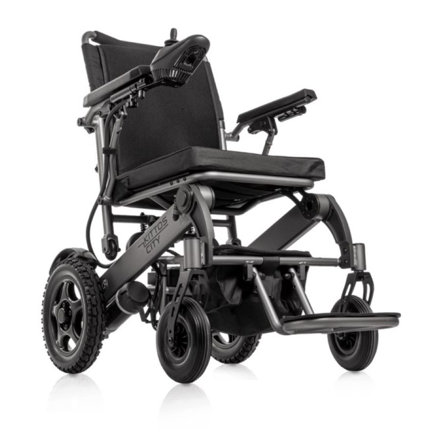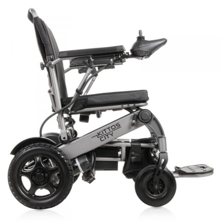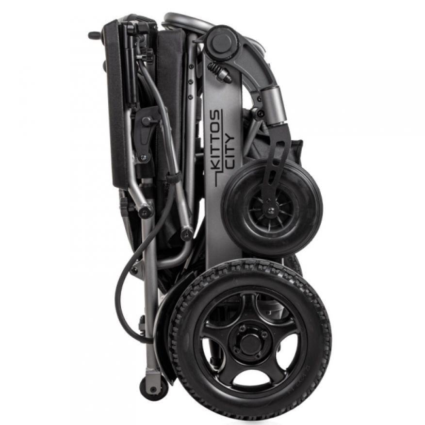 Es una silla ideal para viajar y para ir por ciudad, plegable en solo 5 segundos y tiene unas ruedas patentadas para facilitar el transporte cuando está plegada. Dispone de nuevas mejoras cómo un nuevo sistema de mejora de extracción de la batería, un nuevo sistema de fácil conexión y desconexión del motor. La Kittos City es más estrecha que su “hermana” Kittos Country, con un ancho total de 59,8 cm lo que le permite pasar por las puertas sin problemas.