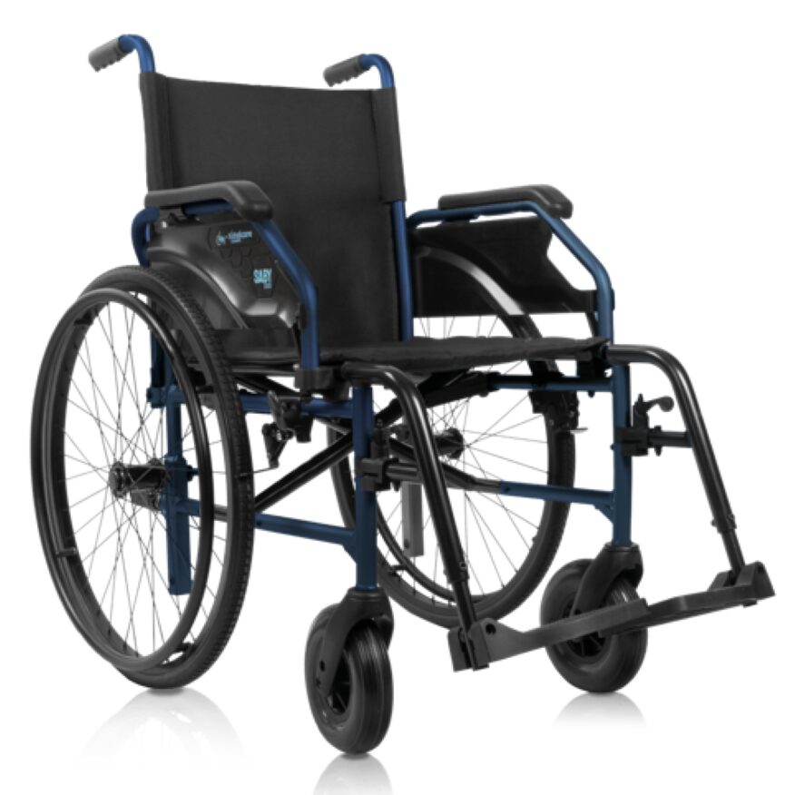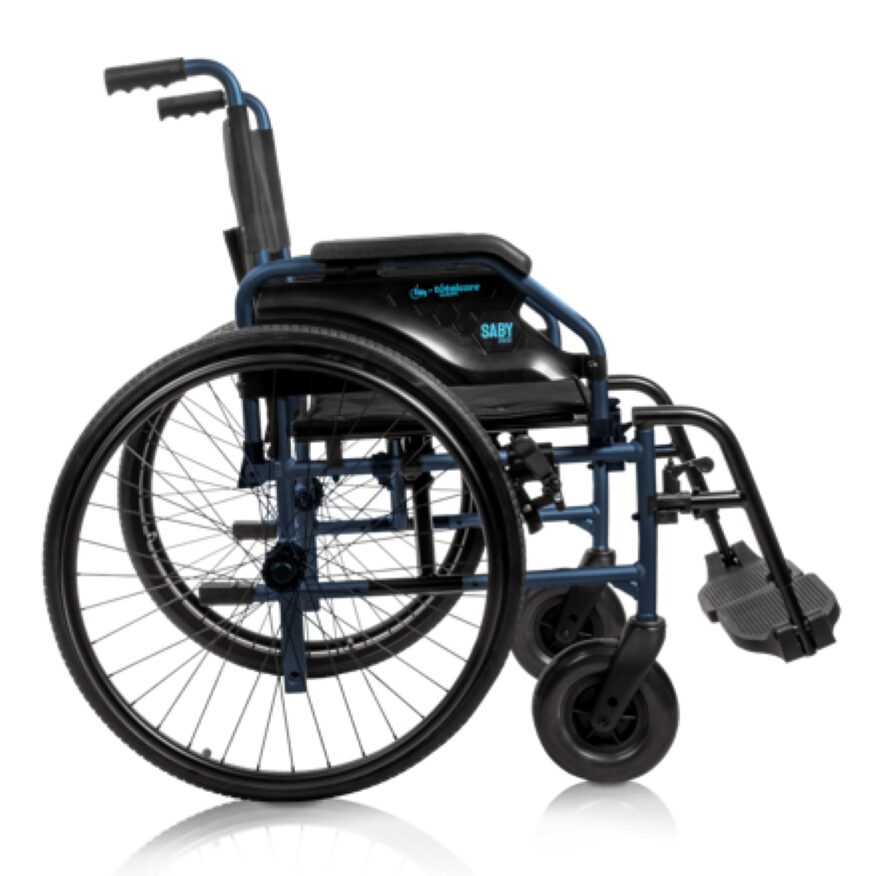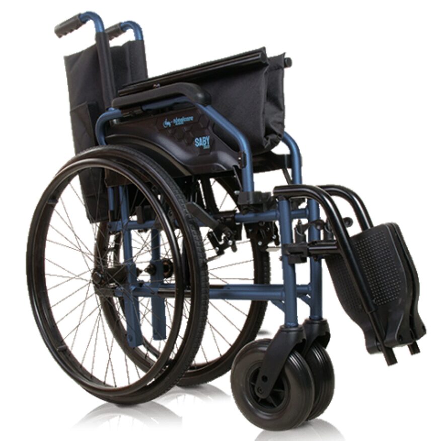 La silla de ruedas Saby 21 está fabricada en acero y dispone de un sistema de doble cruceta para facilitar su plegado. El restyling de la Saby presenta nuevas prestaciones, como un novedoso diseño del lateral con un agarre para facilitar la incorporación, una mayor inclinación del respaldo para mejorar la comodidad y unas ruedas delanteras más robustas y anchas de 5 cm. Las ruedas traseras son de autopropulsión, con un diámetro de 600 mm. Disponible en azul mate y gris mate, colores que proporcionan una apariencia moderna y pulida a la silla. Disponible en tallas de 40 cm, 42 cm y 45 cm. Fabricada en acero, ofrece resistencia y robustez, admitiendo un peso máximo de 120 kg. Su peso total es de 16’60 kg.