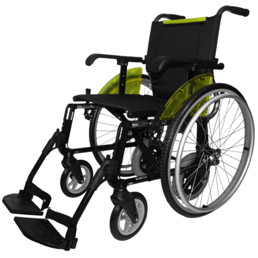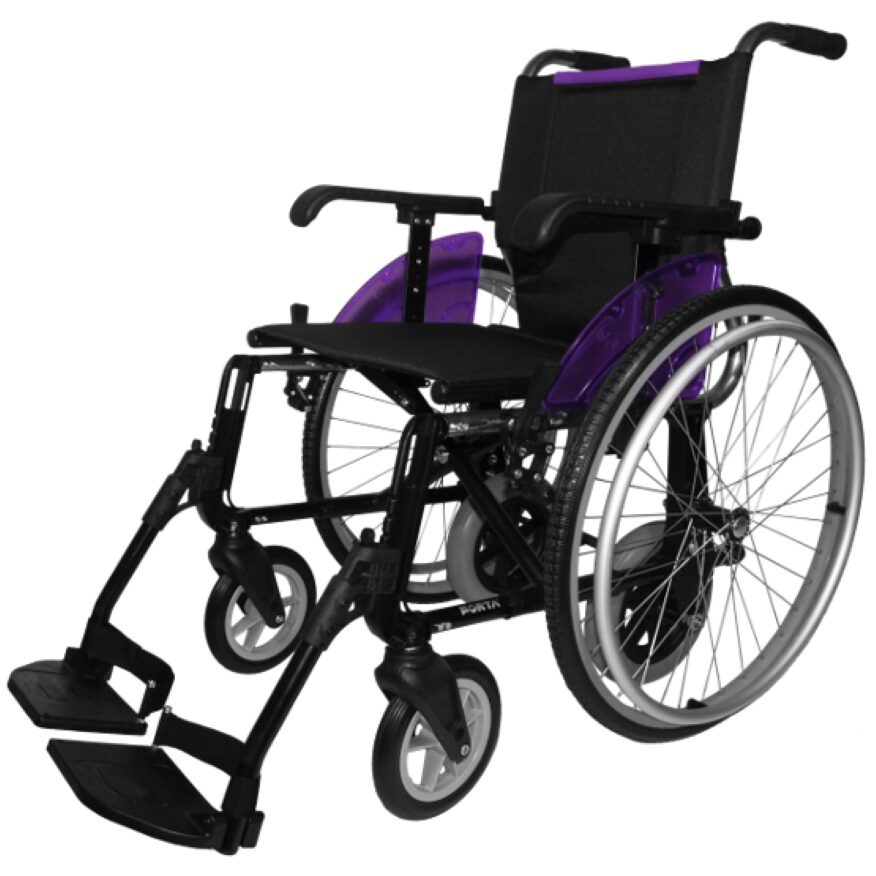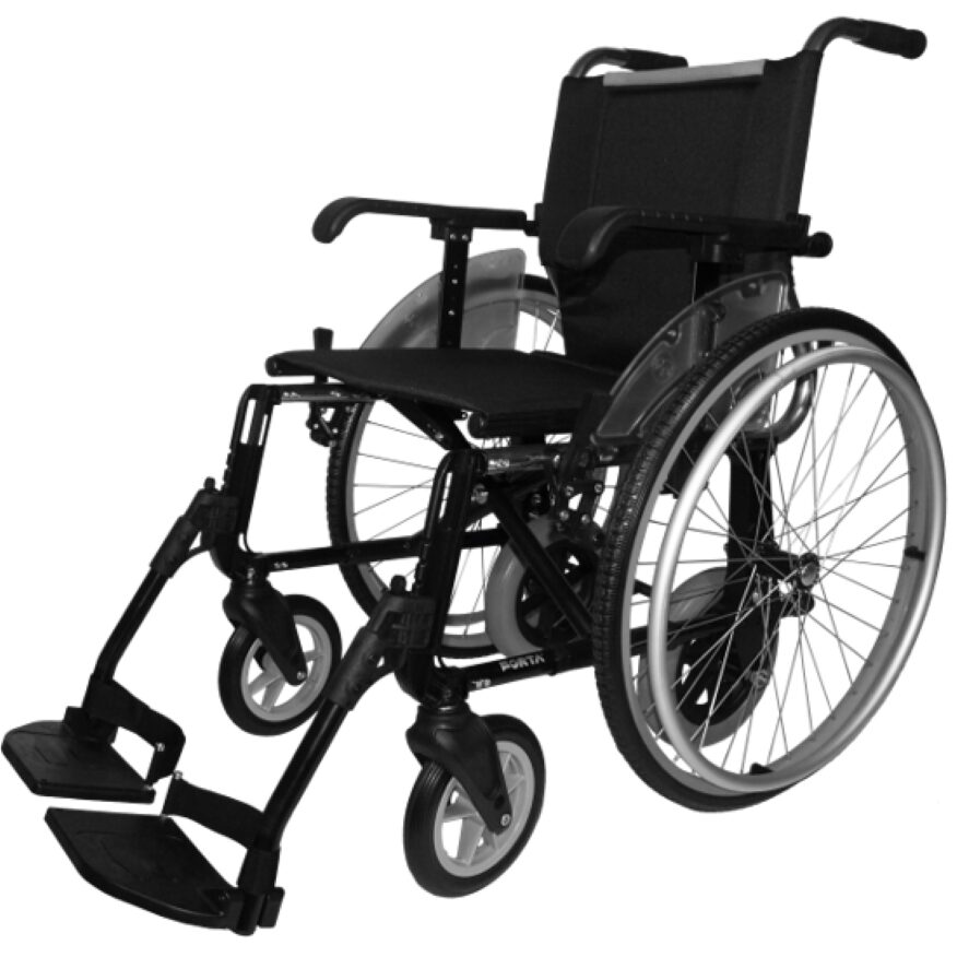 Esta silla viene con ruedas traseras de 600 y 250 mm intercambiables, lo que la hace idónea para solventar problemas de accesibilidad: puertas estrechas, habitaciones pequeñas, pasillos estrechos… Podrás utilizar la rueda pequeña para desplazarte por casa y cambiar a la rueda grande para salir a la calle, al ser más fácil de empujar y conceder autonomía al ser autopropulsable. El cambio de rueda se hace mediante los ejes extraíbles (quick release) que tiene cada una de las ruedas. Las ruedas traseras de 250 mm no llevan freno de serie, pero se les puede colocar antes o después de fabricarla como opción extra. Los reposapiés son extraíbles, regulables y escamoteables, y los reposabrazos también extraíbles. ES altamente resistente y confortable, soportando hasta 140kg.